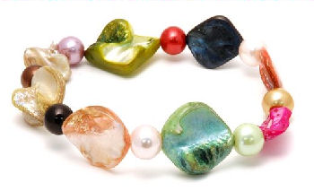 Multicoloured Mother of Pearl & round glass pearl bracelet. |